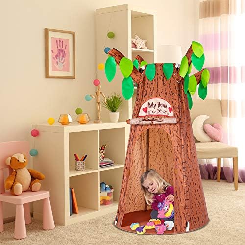 🌲FEEL LIKE IN THE FOREST🌲 Indoor kids play tent has the shape of the natural stump, will inspired toddler’s interests and imaginations when playing forest theme game with this tree house play tent, to make them feel like playing in the virgin forest. 🌲ENJOY ENDLESS TIME OF FUN🌲 Kids play tent are very popular in many American families. Children are more creative, therefore it is essential to provide a private gaming zone for your kids. Owning this tree play tent, kids can learn, discover and have fun by themselves. 🌲EASY ASSEMBLE🌲 Only 3 steps, build a tree house in few minutes. Firstly, unfolded the play tent; then follow the insturction to insert tent poles; at last, stick on the branches to the tree. Recommend you to assembling the treehouse with your children, not tough, no danger, but also improve their hands-on skill effectively. 🌲A WONDERFUL CHRISTMAS GIFT 🌲Our children’s play tents are made with eco-friendly oxford fabric. [Non-toxic! No smell! BPA free! Never fade! Easy wipe-clean!] It would be a FANTASTIC GIFT for Christmas, birthday, or just a surprise to your kids. It’s the best toddler toys for parties, picnics, parks, carnivals or at home. 🌲FOLDABLE & DURABLE🌲 Kids tree tents for preschoolers ages 3 years and up. Unfolded measures: 59″ H x 44″ W, comes with a zipper carrying tote bag. Folded the kids play tent into the bag for convenient storage underneath your couch!