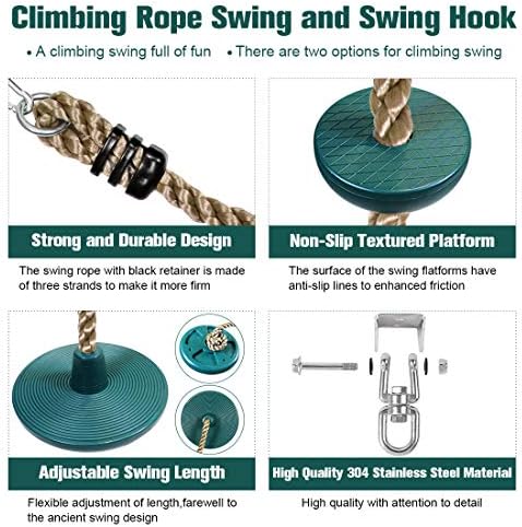 Kids Tree Swing Climbing Rope with Foot Hold Platforms,Disc Tree Swing Seat,and Hanging Kit with Tree Strap – Outdoor&Indoor Swings and Swing Set Accessories – Rope Swing,Green