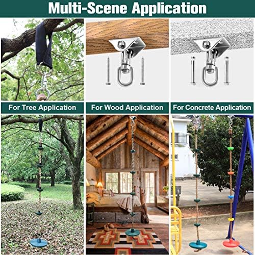 Swing Hook for Wood & Concrete Application. Multi-Scene Application:Indoor,Backyard,Playground,Trees,Swing Set,Jungle Gym. Durable Design. Adjustable Length. Easy Installation. Strong Weighing Capacity. Non-slip Textured Platform. High Quality Rope.