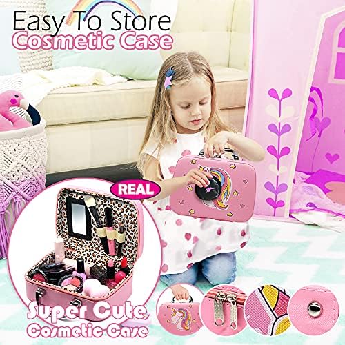 Kids Washable Makeup kit Girls – Real Cosmetic Toy Little Girl , Toddler & Non-Toxic Make Up Set , Children Vanities Dress Up,Child Princess Play pretend Birthday Gift,Age 3 4 5 6 7 8 Year Old