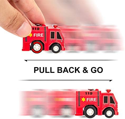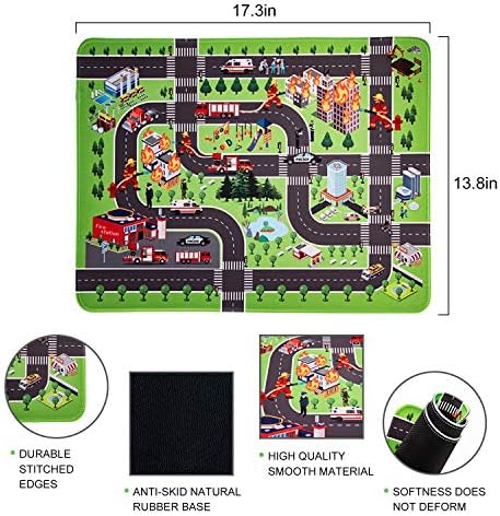 【FIRE TRUCK SET】: 6 realistic small firetrucks, 4 high-quality road signs,1 fire rescue playmat. Enrich the game and stimulate your child’s imagination. 【CAR TOYS】: Each car is made of high-quality plastic, 100% non-toxic. This material is very strong and durable, ensuring quality, safety and durability. The car has a realistic appearance, clear patterns, has movable parts and pull back function. 【ROAD SIGN】:4 high-quality plastic road signs are the best match for car toys, so that children can learn various traffic signs and know their functions while playing cars 【FIRE RESCUE PLAY MAT】Fire rescue play mat (14 inches x 18 inches), lifelike fire scene pattern, rubber material on the back of the mat, environmental protection, and hard to harden. The bottom is made of non-slip rubber with herringbone lines. It can be ensured that it will not be easily displaced on any smooth surface, and the anti-slip effect is good. The stitching of the edge stitching is more tidy and durable. 【PERFECT GIFT】:This exquisite designed fire truck toy. Perfect for birthday present, home decoration, travel toys, party favors, christmas gift.