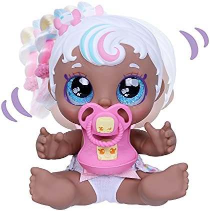 Say hi to the cutest little sisters you will ever meet! Kindi Kids Scented Sisters! That’s right, some of your favorite Kindi Kids now have baby sisters. Say hello to Mini Mello. She is Marsha Mello’s little sister! Mini Mello moves a mile a minute! This softy thinks that snoozing is losing, she’s super upbeat and always cruising. With adorable matching themes to her older sibling, this sweet little girl is scented! Squeeze Mini Mello’s tummy and she will blow you a marshmallow scented kiss! Just like bigger Kindi kids, she has big glittery eyes. Mini Mello just loves being held and played with. You wont be able to stop squeezing her chubby, squishy arms and legs as she wobbles and bobbles like a real little baby! This scented baby sister has a removeable Diaper, Pacifier and Bib for extra fun play. There are 2 other cute little Scented Sisters to collect – Blossom Berri and Teenie Tiara. Collect them all! Yay! Let’s Play! Squeeze Mini Mello’s tummy and she blows marshmallow scented kisses! Mini Mello has a removable diaper, pacifier and bib for extra fun play! Look out for Marsha Mello, my big sister! Mini Mello has big glittery eyes just like her big sister! Mini Mello has chubby, squishy arms & legs! I can wobble and bobble!