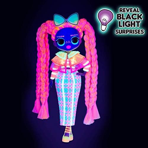 O. M. G! We sisters invite all our fabulous B. B. s to the event of the season. It’s lights, camera, fashion as we hit the neon carpet in our boldest and brightest looks. Get ready to glow, cuz when the black lights hit, we’ll reveal outrageous, glowing surprises. Unbox L. O. L. Surprise! O. M. G. Lights fashion doll – Dazzle – with 15 surprises. She knows true style comes from within, but it can’t hurt to add glitter. She has stunning features, beautiful hair, and her own fabulous style. She’s the big sister to fan favorite L. O. L. Surprise! character, Glitter Queen, and she comes with a totally unique unboxing experience. Slide package apart for a surprise reveal – Dazzle’s picture turns from black and white to color. Reveal Dazzle, wearing a glam outfit and showstopping shoes. Unbox her fabulous garment bag to reveal another fashion and open her hat box to find her accessories. Have her strike a pose to show her off on her included doll stand. The package becomes a reusable play space for Dazzle to strut her stuff. Includes a fashion doll, fashions, shoes, accessories, hat box, black light, hair brush, garment bag, sticker, hanger, doll stand and reusable package play space. Collect all 4 L. O. L. Surprise! O. M. G. Lights fashion dolls.
