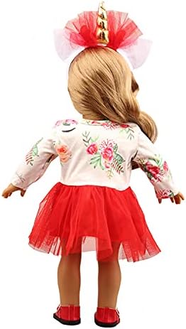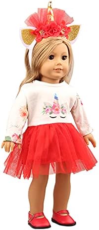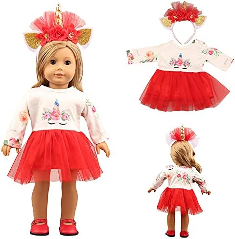 LATAZI Girl Doll Clothes Unicorn Set Includes Dress and Headband, for American 18 inch Doll Clothes and Accessories (Unicorn Costume Set) The Most Suitable Gift for Girls (Red)