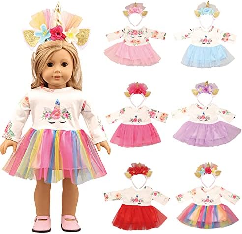 Price: (as of – Details) Girl doll clothes unicorn set includes dress and headband, for American 18 inch doll clothes and accessories (unicorn costume set). Six color set are available. It is the best holiday gift for little girls √❤️Product Details❤️ Girl Doll Unicorn Costume Unicorn Dress Set (Set includes cute unicorn headgear and Ballet