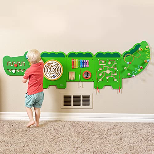 Price: (as of – Details) The Crocodile Activity Wall Panel features 8 different activities to develop fine motor skills, hand-eye coordination and descriptive language. This toddler busy board is tested to the highest consumer standards. All 5 panels include fixing holes and attachment screws for easy assembly. Mount it at just the right height for
