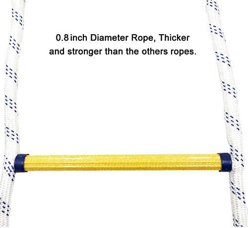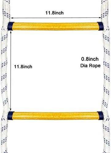 Solid and Stable Quality – Made of sturdy Polypropylene material; 0.8 Diameter Rope, more thicker and stronger than the others rope Easy to Install – Come with 2 Carabiners, can be attached to tree, frame, ceiling or other playground play set Rope Ladder Size – 7.2ft in length, can be used as fire escape rope ladder. Each steps size 11.8inch x 11.8inch, the rung spacing is “kid” size and perfect for the little ones Playground Accessories – 6 steps design. The rope ladder can be added to a swing set, jungle gym, tree or playhouse. Your kids will love this ladder Heavy Duty – Can bear up to 1000 pounds. Weight limited:660lbs (300kg)