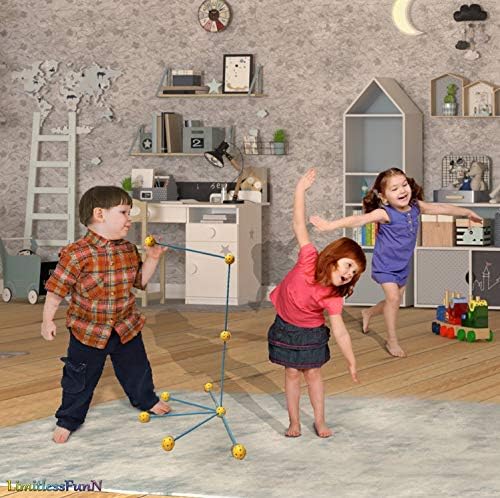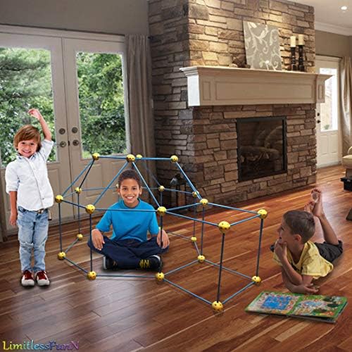 LimitlessFunN® Fort Building Kit is the Perfect Experience for Your Little Child! ❤ ENHANCES CREATIVITY AND IMAGINATION ❤ The perfect place to relax and dream the day away! LimitlessFunN Fort Building Kit is colorful and kids friendly designed. Let your kids experience a magical adventure for indoors and outdoors activities. ❤ PROVIDES KIDS THEIR OWN PRIVATE SPACE ❤ Everyone needs a little space just for themselves. Give your child a fun place to play or sleep. Ideal for bedroom, playroom or basement. Build in the backyard, and they’ve got a magical cave, a fort to be guarded or a secret hiding place. STEM Structure Kit for kids is great for encouraging role play, adventure and fun. Perfect creative toy for 2-3 kids to play. ❤EASY TO ASSEMBLE ❤ No assembly or accessories required. Simply by inserting and twisting the rods into the balls you can build play tent structures, rockets, houses, igloos, castles, cubes, play tunnels and more! Building kit comes with 52 connecting rods and 29 multilink spheres. Cover with a light sheet and your little ones can share secrets away from peeping adults! ❤SAFE FOR KIDS ❤This fort building kit is made with kid-safe, BPA-free plastic; includes 15.7” sticks and 2” balls ❤ GUARANTEE ❤ We have a no hassle 100% guarantee refund policy. If you use this play tent and do not love it, simply return for a full refund or replacement, even used. Consider picking up extra one for family and friends as a Birthday gift.