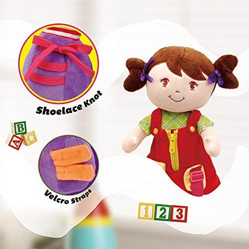Adorable plush doll comes clad in a removable outfit packed with closures-perfectt for testing a little one’s growing problem-solving and motor skills. Buttons, zippers, self-stick tabs, buckles, and laces. INTERACTIVE: Adorable plush Doll comes with clad, a removable outfit packed with closures-perfect for testing a little one’s growing problem solving and motor skills. TODDLER FRIENDLY TODDLER FRIENDLY: Educational Doll comes with buttons, zippers, self stick tabs, buckles and laces; All accessories are embroidered and safely sewn onto doll to ensure safety for children during play time. LEARN INDEPENDENT SKILLS: Your little one will Learn to dress, tie their shoe and attach velcro. This Educational Doll works great with everyone who is looking to relearn motor skills due to age and for new development. FUN TO PLAY & LEARN: Kids will love to play and develop skills with this Educational Doll. It is beautifully designed with bright colors, and patterns that all kids love! ABSOLUTELY SAFE AND EASY TO CARE: Linzy Toys is focused on providing your family with products that will become some of your favorite memorabilia and last for a lifetime. All our plush dolls meet or exceed the ASTM F963 & CPSIA Safety Standards, that come with rigorous quality controls. To care for her, simply spot-clean the desired area, and leave flat to dry. UNIQUE RAG DOLL : Linzy Plush has been making these dolls for two decades and has earned a reputation as a new classic with its great designs and high quality workmanship, all Linzy Rag Dolls are made by premium fabrics and stuffed with snow-white polyester fibers.