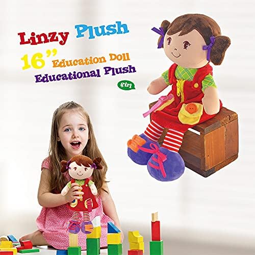 Linzy Plush 16″ Educational Plush Doll, Adorable Plush Doll Comes with clad ,a Removable Outfit Packed with Closures-Perfect for Testing a Little One’s Growing Problem Solving and Motor Skills
