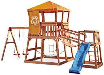 Little Tikes makes your kid’s first car, first sandbox, and even their first house. We’re excited to take your kid’s backyard fun to a whole new level with Little Tikes Real Wood Adventures, fun, durable wooden playsets. The Real Wood Adventures Grizzly Grotto playset has space and activities for up to 10 kids to play at once. The roomy, comfortable, 5′ high clubhouse deck has two moveable fabric shades and is perfect for campouts, stargazing, and all of kids’ favorite activities. Little Tikes knows how important active play is for kids’ bodies and minds, so this playset features a suspended rope bridge, a vertical climbing net, and a built-in ladder to encourage kids to get up and active. Then, they can soar through the sky on the classic rope swings, fly down the 8′ long wavy slide, or take in the scenic view from the built-in picnic table. The Grizzly Grotto playset is chalk full of activities that encourage kids to play make believe and other imaginative games. Every Real Wood Adventures playset comes with built-in safety railings and handholds so kids can play and parents never have to worry about their safety. There’s even two removable canvas sunshades that turn the playset into the perfect place to relax in the shade after a full day of play. Real Wood Adventures playsets from Little Tikes, parent trusted for over 50 years. Final product color may vary. SPACIOUS AND COMFORTABLE – Little Tikes Grizzly Grotto exclusive wooden swing set for backyard features a 5′ cozy clubhouse, bungalow, cottage deck with a fabric shade that’s perfect for campouts, stargazing, and more. It’s like a castle in your yard. ENDLESS HOURS OF PLAY – This kids and toddler play house comes with a vertical climbing and built-in wooden ladder and rope climber for hours of endless kids backyard fun. AMAZING ADVENTURES – Includes two classic rope swings, 6’ long suspended rope bridge with twin 4’ lookout platforms on either side. SAFE & STURDY – The materials used in all of our outdoor playhouses wooden swing sets for backyard comes from an FSC certified source, are chemical-free, sturdy, and robust. They are 100% safe for children. SLIDE IN STYLE – An 8′ long wavy plastic slide is mounted onto the clubhouse deck for fun and easy exits