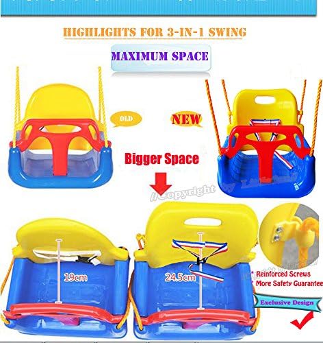 Grows With Your Child Put up the swing in your yard,patio or garden and then just enjoy it with your kids on the sunny days of holiday,weekend or your family days. To help keep your child secure, we make use of reinforced screws in the swing backrest that is exclusive design,not found in other sellers yet.