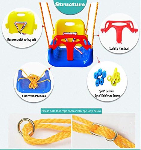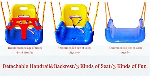 Price: (as of – Details) The package includes: One Set of Kid Swing One pair of Swing Hanging Kit 2PCS* Free Bonus GiftsInstallation Instruction Manual Features: Enough demand for your kids’ growth, just need one set of this swing. This kids swing can be detached as 3 kinds of seats,specially for three stages of your