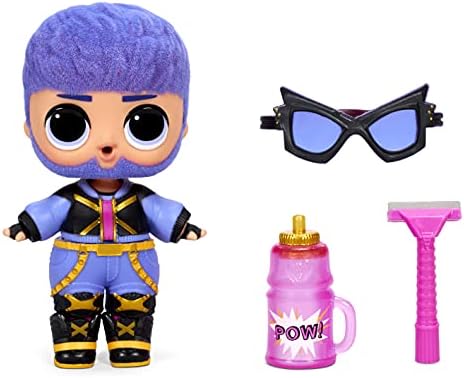 Unbox the brother of one of the fan favorite LOL Surprise dolls with LOL Surprise Boys Series 5! Each character has a similar fierce style to his sister character, but with his own unique twist. And now they have flocked hair! Reveal an additional hidden hairstyle by using the included toy razor to “shave” the flocked hair. Feed or bathe doll to discover water surprises, including color change! Doll is anatomically correct. The ball also becomes a carrying case, doll stand, or playset. 7 Surprises: (1) secret message, (2) stickers, (3) bottle, (4) shoes, (5) outfit, (6) accessory, and (7) LOL Surprise! Boys Doll. Collect all 8 characters. LOL Surprise collectible dolls with stylish hair, fun to dress outfits and many detailed accessory pieces make a perfect toy and playset for kids including 4 to 7 year olds and up girls and boys for imaginative pretend play! As birthday gifts and gift for any special occasion, dolls provide hours of social play with siblings and friends! From MGA Entertainment, creators of LOL Surprise fashion and collectible dolls, Rainbow High fashion dolls, Na Na Na Surprise dolls, Bratz fashion dolls, MGA’s Dream Ella fashion dolls, MGA’s Glitter Babyz baby dolls, Lalaloopsy, Poopsie Surprise girls dolls, Baby born Surprise Baby Dolls and Collectibles, Little Tikes kids toys and many other favorite brands. SURPRISE BOY DOLL WITH FLOCKED HAIR: Each doll is a Brother to fan favorite characters and now they have flocked hair! CUTE COLLECTIBLE CHARACTERS: Inside, find one of 8 all new characters in Series 5, each with their own fierce style that shows off their personality! REVEAL HIDDEN HAIRSTYLE: Use the included toy razor to remove the flocked hair and reveal an additional hairstyle. WATER SURPRISE: Each doll has a water surprise. Feed or bathe your doll in water to reveal a surprise like crying, spitting or even color change. 7 SURPRISES: (1) secret message, (2) stickers, (3) bottle, (4) shoes, (5) outfit, (6) accessory, and (7) LOL Surprise! Boys Doll