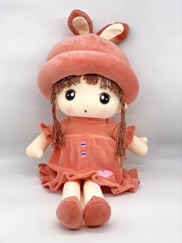 LunaKid Plush, Cuddly, Huggable 28 Inches Peach Rag Doll Toy for Toddlers, Baby Girls, Comes in 3 Colors, Pink, Peach, Lilac, Super Snuggly, Big Plushie Super Soft and Very Cute (Peach)
