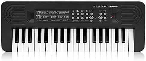 M SANMERSEN 37 Keys Kids Keyboard Piano with Dual Speaker Portable Electronic Music Piano Keyboard Educational Teaching Piano Toy Gift for Beginners Boys Girls, Black