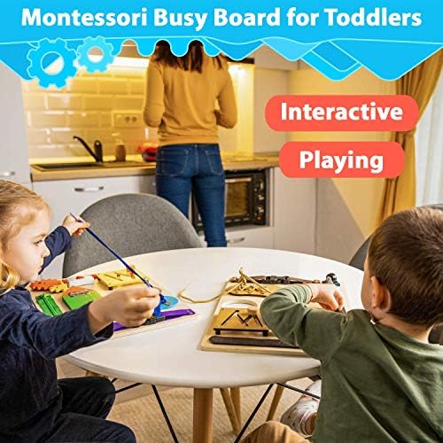 Price: (as of – Details) Product Description NATURAL, DURABLE WITH PLENTY OF THINGS TO TOUCH, MOVE AND PLAY – Give toddlers the opportunity to explore real-life challenges and play in a safe environment with our montessori busy board. Develops logic, fine motor skills, memory, independence and more. Due to the elements on the busy board,