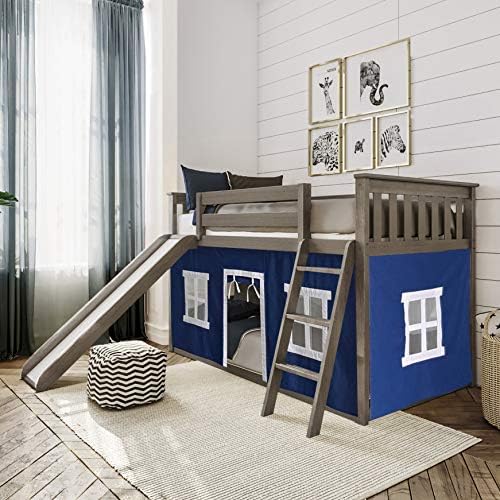 Price: (as of – Details) Plenty of room for sleep and play? Now that’s a win-win! The Max & Lily Twin Over Twin Low Bunk Bed with Slide & Blue Curtains is the perfect combination of functional and fun that both kids and parents love. Only 50 inches high, this space-saving low bunk design is