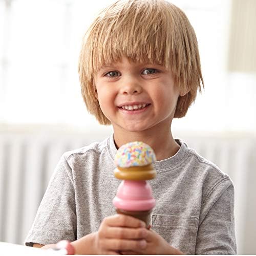 Scoop up some cool treats with this all-inclusive, 28-piece pretend play ice cream counter; The sturdy wooden tabletop counter holds eight wooden scoops of different-flavored ice cream, six assorted toppings, two cones, a plastic cup, an ice cream scooper, tongs, and a wooden spoon. The scooper fits into a hole on top of the scoops to lift, stack, and release. Take orders on the reusable menu card, pay with play money, and serve up delicious fun! All inclusive ice cream play set: The Melissa & doug wooden scoop & serve ice cream counter includes wooden ice cream counter, 8 ice cream scoops, 6 toppings, 2 cones, cup, scooper, tongs, wooden spoon, and 6 pretend $1 bills 28 piece kids ice cream station: This 28 piece wooden ice cream play set features a scooper that fits into a hole on top of the scoops to lift, stack, and release the scoops Eeplicates the entire experience: Our kids ice cream play set with toppings also includes a reusable menu, so children can take orders, pay with play money and serve up deliciousness, just like their favorite ice cream shop Great gift for ages 3 and up: The Food Groups Wooden Play Food set makes a great gift for kids ages 3 to 6; The Melissa & Doug Play Time Produce and Vegetables Play Food set is a great accompaniment The gold standard in childhood play: for more than 30 years, Melissa & Doug has created beautifully designed imagination- and creativity-sparking products that nbc news called “the gold standard in early childhood play.” 100 percent happiness guarantee: We design every toy to the highest quality standards, and to nurture minds and hearts; if your child is not inspired, give us a call and we’ll make it right; our phone number is on every product