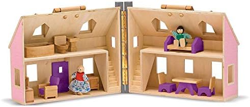 Price: (as of – Details) Enjoy a “home away from home” with this delightful wooden dollhouse. Two flexible wooden play figures live in this house with 11 pieces of wooden furniture. The dollhouse opens for easy access and folds closed for convenient storage. This wooden portable dollhouse is designed to open fully and give kids
