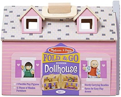 Enjoy a “home away from home” with this delightful wooden dollhouse. Two flexible wooden play figures live in this house with 11 pieces of wooden furniture. The dollhouse opens for easy access and folds closed for convenient storage. This wooden portable dollhouse is designed to open fully and give kids easy access for a more enjoyable playing experience. It also comes fully assembled, so children can simply fold it open to begin their playtime. This two-story wooden dollhouse allows kids to arrange furniture and open and close doors, and it stimulates their creativity by allowing them to interact with the two wooden play figures. Kids will learn about shapes by locating rectangles, squares, and more, and develop fine motor skills while engaging in storytelling and imaginative play. The Fold & Go Mini Dollhouse is a creative and thoughtful gift for kids ages 3 to 6. Add the Melissa & Doug Poseable 7-Piece Wooden Doll Set to round out the pretend play experience and give kids an engaging option for screen-free fun. For more than 30 years, Melissa & Doug has created beautifully designed imagination- and creativity-sparking products that NBC News called “the gold standard in early childhood play.” Today, Melissa & Doug is proudly partnering with the American Academy of Pediatrics to foster early brain development and help children build important life skills through play. PORTABLE MINI WOODEN DOLLHOUSE: The Melissa & Doug Fold & Go Mini Dollhouse is a portable wooden dollhouse that features working doors and includes 11 pieces of wooden furniture and two flexible wooden play figures. STURDY CARRYING HANDLES: Our Melissa & Doug Fold & Go dollhouse for kids has sturdy handles that allow kids and parents to bring the toy along for portable play. EASY TO PLAY: This portable wooden dollhouse is designed to open fully, giving kids easier access for a more enjoyable playing experience. GIFT FOR 3 TO 6: The Fold & Go Mini Dollhouse is a creative gift for kids ages 3 to 6. Add the Melissa & Doug Poseable 7-Piece Wooden Doll Set to round out the pretend play experience and give kids an engaging option for screen-free fun. “THE GOLD STANDARD IN CHILDHOOD PLAY”: For more than 30 years, Melissa & Doug has created beautifully designed imagination- and creativity-sparking products that NBC News called “the gold standard in early childhood play.”