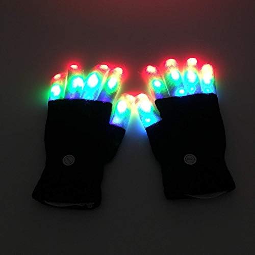 Features: *Each has 3 light colors and 6 different lighting modes. *The wrist of the glove is stretchable. *Made of polyester of good air permeability. *You can change the light modes by pressing the button on the wrist. *Great for concerts, raves, clubs, hip-hop, etc. A fun toy & gift for friends. *Including light-up modes of quickly flash, slowly flash, continuous on, off, etc. *LED light glows and flashes in darkness or during the day with different colors.