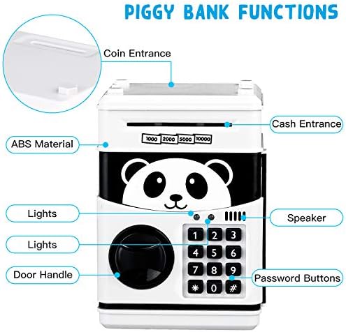 Money Bank for Kids Electronic Piggy Bank Cartoon Password ATM Piggy Bank for Real Money, Auto Scroll Paper Money Saving Box Best Toy Gifts for Boys Girls (Panda)