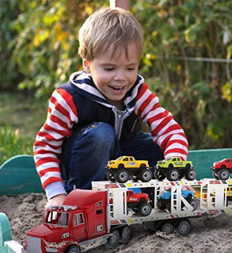 WHAT’S INSIDE – Includes 1 Mozlly Friction Trailer Carrier Truck Playset with either monster trucks or ATVs. Develop your kids interest into cars and trucks. Their new favorite toy trucks to take on the road. Styles and colors may vary.
