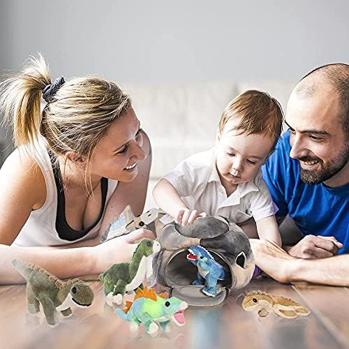 【Storage Design】 A total of seven items, including six small plush dinosaur toys and a 7.8-inch volcano house. It’s very convenient to carry out that all stuffed dinosaurs can be placed in the volcano house. 【Suitable Size】6 small dinosaur plush toys in the 7.8-inch volcano house. The size of the dinosaur stuffed animals is suitable for the small hands of children of all ages. The plush texture makes the kids adore it. 【Safe and Durable】 Our dinosaur plush toys are made of premium-quality fabrics and have long-lasting durability. The zipper is very strong, will not fall off easily, and will not scratch the baby’s delicate hands, with high safety. 【Educational Toys】 Multiple dinosaur toys allow children to play with friends or parents, and develop the imagination and creativity of the brain. Seize all opportunities to establish relationships with your kids. 【Best Gift】Cute Dinosaur Combination Series Plush Toys are the best choice for holiday gifts, including Valentine’s Day, Christmas Day, Easter, Birthday, etc.