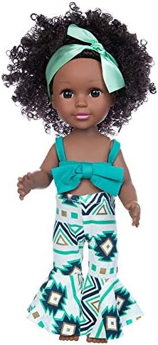 💖💖Choose this black doll to accompany your kids, play with them together, sleep with them together. Besides, they can dress the doll up according their preferences. You know, In the kids’ world, that is everything. 💖💖【REALISTIC BLACK DOLL】- Realistic African simulated cute curly hair and black soft skin, good touch and cute face. Looks truly realistic. The head and limbs can rotate and can sit and lie down. The clothes are removable and washable, you can buy other clothes to dress her. 💖💖【DESIGNED FOR YOUR KIDS】- The doll is good friend of the child. Perfect as a Birthday gift, New Year gift, party favor and other holiday gift for your kids. Helpful to create a world of fun, imagination and creativity for all children. Also can encourage children to express their emotions and cares, and to cultivate them a kind character. 💖💖【PERFECT SIZE PLAY DOLL】- Package includes 14inch black girl doll with cute overall set and hairband. 💖💖【SUPREME SAFE QUALITY】- Made from non-scented and washable vinyl, soft and smooth, harmless to children and environmentally friendly. Wipe it down with a damp cloth if doll gets dirty. The doll clothes also can be washed by washing machine or hand, it will turn almost as good as new. The black exploding hair is implanted by handmade, you can play you imagination to change hairstyles for it.