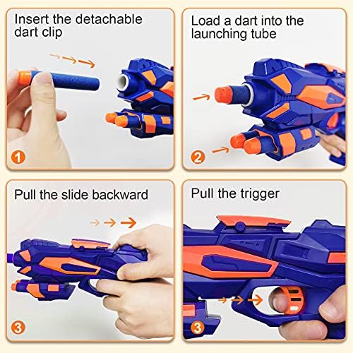 Come with 2 blaster guns and 40 refill foam darts, perfect for parent-child activities, which is good for promoting parent-child communication and leave an unforgettable and happy memory of your kid’s mind. It’s also a good toy for your kid to play with siblings or with friends, competition will bring them more fun and more exciting experiences. Start the game, and let’s see who will be the winner!