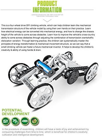 Price: (as of – Details) Product Description This is a 4WD climbing vehicle DIY science kit for kids, which helps children learn about mechanical transmission structure by building it themselves. They learn how electrical energy is converted into mechanical action. This building set is a perfect intro to engineering for kids and teens – It