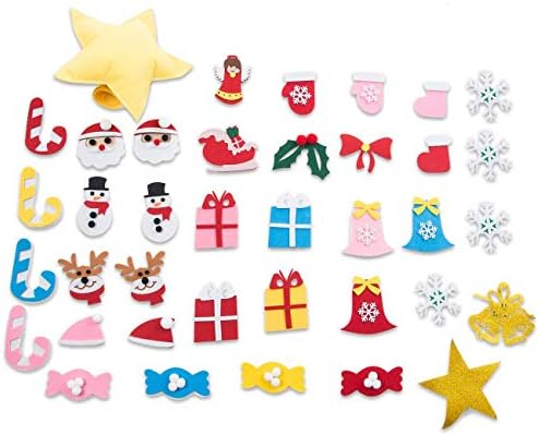 High-Quality Fabric: DIY children’s felt Christmas tree is made of high-quality felt fabric, which is safe and environmentally friendly, has no peculiar smell, and is lightweight and durable. Add Christmas Atmosphere: Christmas tree decorations include: snowman, Christmas hat, Santa Claus, Christmas candy and bells, etc., which can add a festive atmosphere to your holiday and bring joy to your family. Best Gift for Kids: This 3D felt Christmas tree can exercise children’s hand-eye coordination ability during installation, improve children’s creativity and stimulate children’s brain development Easy to Install: Every accessory of the product has Velcro, you can easily install a cute 3D felt Christmas tree for your child through the installation instructions. Tip: We also provide a hot melt glue stick so that you can better fix the product Package Includes: 1 x cylindrical felt cloth, 19 x light green felt leaves, 19 x dark green felt leaves, 37 x decorative accessories, 1 x five-pointed star hat, 1x hot melt glue stick, 1 x installation manual.