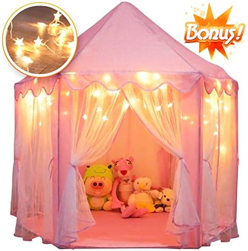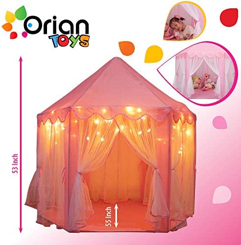 Orian Princess Castle Playhouse Tent for Girls with LED Star Lights – Indoor and Outdoor Large Kids Play Tent for Imaginative & Pretend Games – ASTM Certified, Cool Toys for Girls 55 x 53 inch (Pink)