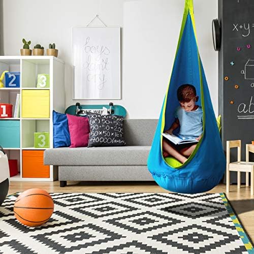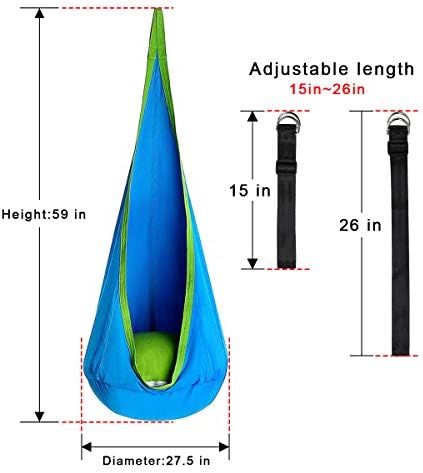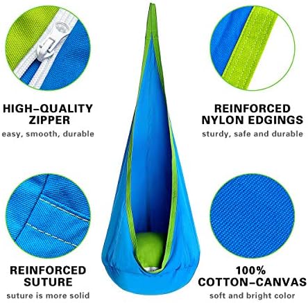 【Fun & Sensory】- OUTREE Kids Pod Swing Seat will give children a peaceful and warm place to play, and provide kids a sense of safety while at the same time provide soothing sensations that can help them regulate sensory and relax, 【Comfortable】- The 100% cotton-canvas material is soft, warm and breathable, it makes the kids hammock chair is quite comfortable to sit in while reading, watching TV or listening to music. It’s a great choice for sensory swing. 【High Quality & Safe】- The sensory swing’s design with reinforced nylon edgings and double stitched to increase safety, soft PVC air cushion make you don’t worry about mold problem. The swing can support up to 100 pounds, easily taken down and stored away at any time to make more room. 【Universal Use】- Our kids pod swing is great for indoor or outdoor use. Whether you hang it from your ceiling, or thinking about hanging it from a tree. Besides, it would make a great addition to a child’s room, especially as a reading nook. 【Easy To Install And Use】- This kids swing is easy to hang and all hardware is included. Different from others, we provide adjustable nylon belt, and two kinds of screws: expansion bolt for concrete and screws for wooden .