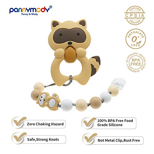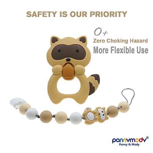 DESIGN: Panny & Mody raccoon baby teether toys are soft on babies’ gums and entirely made of the highest quality food grade silicone. They have grips on the back for easy handling by small hands. FUNCTION: Our Panny & Mody raccoon baby teethers are designed to stimulate baby’s visual motor and sensory skills. Baby picks up vibrantly colored shapes-tastes and feels it-all the while enhancing hand-to-mouth coordination through play. Panny & Mody’s Teethers are Excellent Training Toys. Effective for front and middle teeth, plus those molars. Neutral colors make this one of the best baby gifts and infant toys. CLEAN: Easily attach to a pacifier clip to offer your baby quick and easy access. In case they fall, your cute raccoon teethers will clean effortlessly with soap and water. It’s also top rack dishwasher safe. They’re durable – lasting well beyond baby’s teething years. They’re also a stimulating sensory toy for toddlers. WARRANTY: All Panny & Mody baby teething toys are come with 1-Year Manufacturer’s Warranty – 30 Days No Questions Asked Return Policy – Money Back Guarantee – Lifetime Friendly Customer Service. Value for money guaranteed, No risk choice. Click the “Add to Cart” Button to Buy Now!