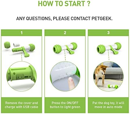 USB RECHARGEABLE: Interactive dog toys equipped with USB port, can be easily charged without replacement of batteries. Dog toy built-in 850 mAh lithium polymer battery, charging for 1 hour, lasting more than 2 hours in interactive mode, longer in sleep mode. ENTERTAIN & EXERCISE: Automatic dog toys attract dog excited to chase, bite and running. Motion activated with automatic moving toy for dogs could help the dog exercise more and entertainment. Interactive features aid in training. Suggest used on hardwood floor for best result and battery consumption. SAFE & DURABLE: PETGEEK electronic dog toys made of upgraded TPU material & natural rubber cover. Environmentally friendly and chewy, protects your puppy’s claws and teeth. All dog toys can’t be truly indestructible, but our puppy toys are more durable than others. EASY TO CLEAN & REPLACE: Dog chew toy’s detachable tires and protecting cover are easy to take off, thus could be conveniently cleaned! Aim to reduce dog sick when pet toy get dirty. 100% satisfaction service in PETGEEK. Any issues, please feel free to contact us.