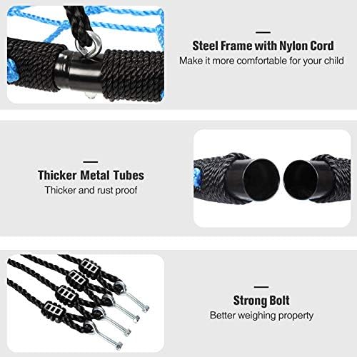Pitpat 40″ Spider Web Swing with 4 Ropes Adjustable from 55″ to 102″, Spider Swing for Kids for Kids 660 Lbs Load and Stainless Steel Frame, Outdoor Large Web Swings for Tree (Blue)