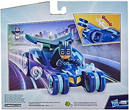 It’s time to be a hero! Preschoolers can zoom to the rescue with the PJ Masks Catboy Deluxe Vehicle. This This Cat-Car toy is equipped with spinning Super Cat Stripes inspired by the Disney Junior show! Kids can release and activate the Super Cat Stripes feature by pressing on the spoiler. This ready-for-action set comes with a poseable Catboy action figure that sits in the open cockpit, so kids can play out their favorite moments from the show. Plus, Catboy figure is compatible with Hasbro Hero ID-equipped PJ Masks playsets (each sold separately, subject to availability), which recognize and react to 3-inch PJ Masks figures with lights, sounds, or both. This Catboy car toy makes a fun gift for preschoolers ages 3 and up who love the superhero adventures of Catboy, Owlette, and Gekko. EXCITING PJ MASKS VEHICLE TOY: The PJ Masks Catboy Deluxe Vehicle toy is ready to roll! Preschool kids will love playing with this Catboy car inspired by the hit Disney Junior show SUPER CAT STRIPES FEATURE: The Cat-Car toy is equipped with spinning Super Cat Stripes that preschoolers can release and activate by pressing on the spoiler, no batteries required CATBOY ACTION FIGURE INCLUDED: Poseable Catboy figure fits in the cockpit of the Cat-Car vehicle, so kids can recreate favorite scenes from the PJ Masks show and imagine epic adventures COMPATIBLE WITH HERO ID TECHNOLOGY: Figure works with Hasbro Hero ID-equipped PJ Masks playsets (each sold separately, subject to availability), which recognize and react to 3-inch PJ Masks figures SUPER GIFT FOR PJ MASKS FANS: Deluxe vehicle and figure sets make an awesome gift for kids ages 3 and up who love the superhero adventures of Catboy, Gekko, Owlette, and all their friends and foes