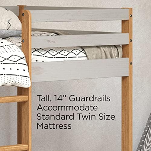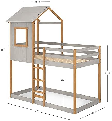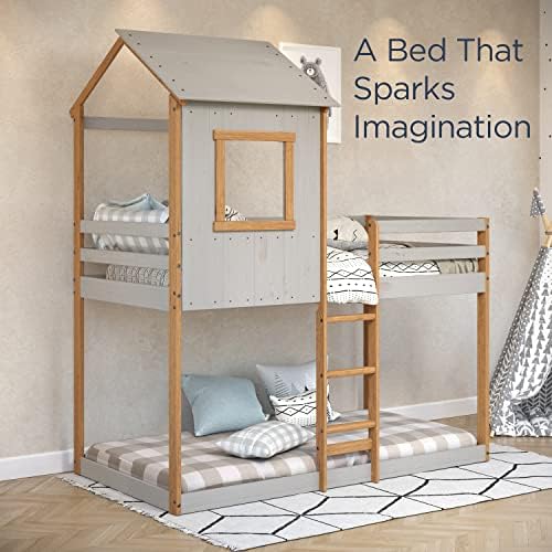 P’kolino Treehouse Style Twin Bunk Bed for Kids – Built-in Guard Rail, Made in Brazil with 100% FSC-Certified Pine Wood, Supports 200 Pounds, Grey/Natural