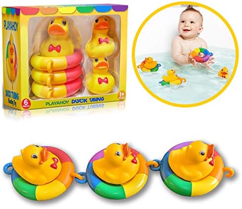 BATH RING DUCKS is a perfect playful bath toy. The toy consists of three connecting tubes with three rubber ducks. The color and print is exciting and enticing. Connect the three tubes and place the ducks onto the tubes. All the pieces float and they’re all fun to play with. This will fast become your kid’s bath time favorite! DEVELOPS STRONG SKILLS. It’s a great source for color coordination, and a perfect way develop fine motor skills and hand eye coordination. BATH TOY is made to float and it’s soft material makes it a great choice for all ages. SAFETY CERTIFICATIONS: The duck tubing toy is non toxic and lead free. It conforms to ASTM and CPSC standards. They are firmly sealed, so no water gets in to the rings, and they stay mold free GREAT GIFT IDEA: Kids enjoy this toy in all situations, at home, bath time or in the pool, it keeps the kids busy for hours. A great toy with nice packaging equals a GREAT GIFT!