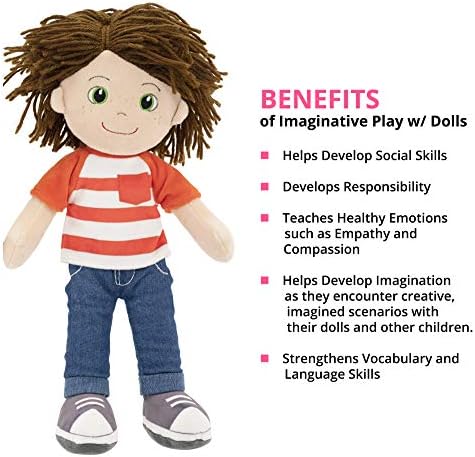 Playtime by Eimmie, one of the most recognizable names in the doll clothing/furniture space, is delighted to bring these 7 lovely soft rag dolls.They are the perfect addition to any toy collection. Let your child’s imagination come to life with Allie, Eimmie, Kaylie, Charlie, Ollie, Ballerina Emmie and Salsa Julie! These rag dolls are made of very soft plush, which makes them the perfect cuddle buddies for your youngster. Standing 14 inches tall, these rag dolls are safe for children of all ages. They are also a great screen-free activity! Studies have shown that too much screen time can negatively affect a child’s cognitive development. Eimmie and her rag doll friends will help children step away from electronics and entertain themselves with real imaginative play. Imaginative play with dolls helps children develop social skills, responsibility, creativity and imagination. It also teaches children healthy emotions such as empathy and compassion while strengthening vocabulary and language skills. SOFT AND CUDDLY: Our rag dolls are a soft plush toy, which makes them the perfect cuddle companion for sleep or play. Similar to Raggedy Ann or Raggedy Andy, this doll is appropriate for girls or boys of all ages! LARGE 14 INCH SIZE: This plush doll is 14 inches tall. It’s the perfect size for hugs, snuggles, or playtime. Any toddler, child, or baby would love to wrap their arms around it. QUALITY DESIGN AND SAFELY MADE: Each Ollie rag doll features an embroidered nose, mouth, and eyes, which makes it perfectly safe for kids of all ages. Ollie is carefully crafted which means your child’s rag doll will last for years. PERFECT BIRTHDAY OR CHRISTMAS GIFT: This plush rag doll makes the perfect gift for all occasions. Newborn, first birthday, or older, children would love to have Ollie as a friend. This also works perfectly as a My First Baby Doll! GREAT TOY FOR PLAYTIME: This 14-Inch rag doll can be used for imaginative play at home, school, daycare, inside or outside. Use Ollie to be the main character in a play or movie, a superhero that saves the day, or just your best friend to hang out with.