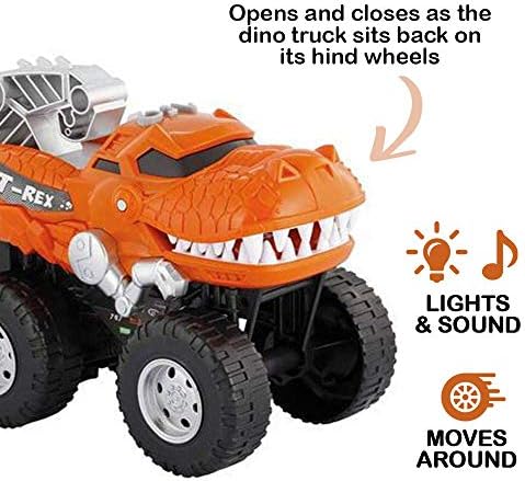 Price: (as of – Details) The Perfect Dinosaur Truck for Dino Lovers Dazmer’s Dino Car is a dinosaur and car rolled into one – the best combination of battery-powered entertainment for your boy or girl. This T rex Dinosaur Monster Truck has light-up features and sounds that will delight your child as it races across