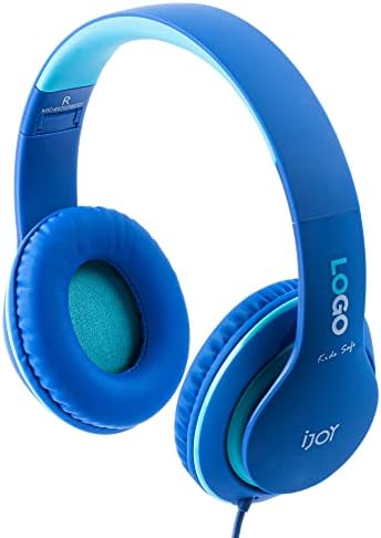 Premium Headphones with Microphone for Kids by iJoy- Kid Safe Over-Ear Headphones with Hearing Protection for Boys & Girls- Kid’s Adjustable Headset with Mic for School, Music- Blue (Blue)