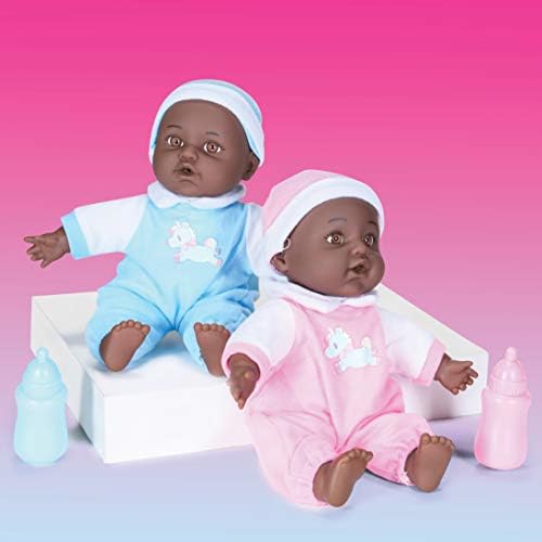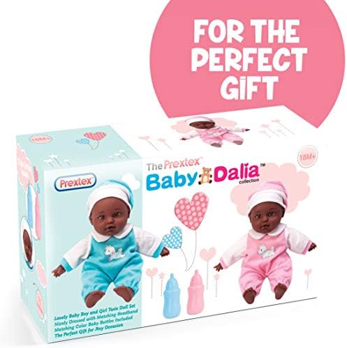 Price: (as of – Details) Product Description Prextex Baby Black Twin Dolls Set – 11-Inch Soft African American Doll Set with Pink and Blue Toy Bottle – Best Gift for Toddlers and Girls Includes: A cute and soft baby boy and girl twin doll set, measuring 11 inches from head to toeEach doll has a
