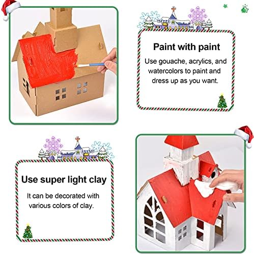 Putz Style Houses, Set of 6 Mini Little Vintage Christmas Houses, DIY Complete Kit with 12 Color Paints, Little Village Houses with Christmas Tree for Children to Build and Paint Birdhouse