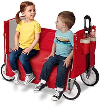 Price: (as of – Details) Radio Flyer deluxe 3-in-1 EZ fold wagon is designed as a full sized wagon for 2 kids that folds compactly and offers 3 different modes. With an easy one hand fold, you can take or store the wagon anywhere. The wagon features 3 modes: 2 kids riding, flatbed hauling, and