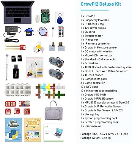 Price: (as of – Details) Product Description Raspberry Pi Laptop Introducing CrowPi2 We have made a revolutionary upgrade to the original CrowPi in two years. That is CrowPi2. CrowPi2 can be used as a portable laptop or for learning STEM education. Featuring 22 kinds of common sensors& modules, and independently developed software, CrowPi2 is exactly