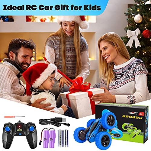 Rcfunkid Remote Control Car, 4WD RC Cars with Double Sided 360 Degrees Tumbling and Rotating, 2.4GHZ RC Stunt Car with LED, RC Car Toys for 8 Year Old Boys Girls