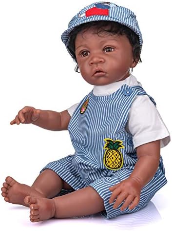 Realistic Reborn Toddler Dolls Black Boy 24 Inches Real Looking Soft Silicone Limbs and Head Soft Cloth Body African American Weighted Body Cute Baby Dolls Best Gift for Age 3+